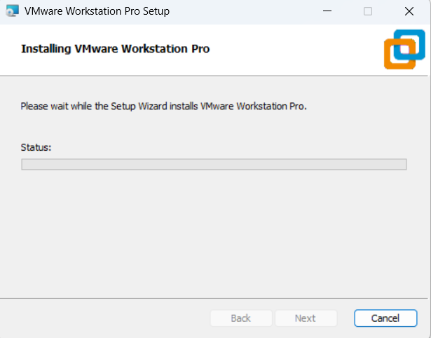 Please wait while VMware Workstation Pro installs. This may take a few minutes.